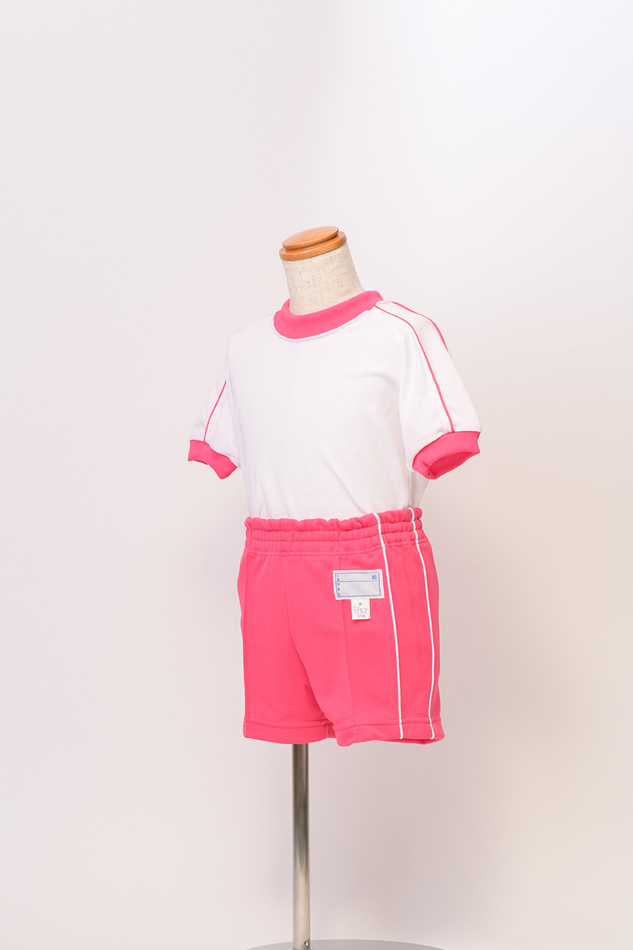 PETボトルを再利用した衣料用繊維を使用した半袖体操着。吸水速乾性にすぐれながらも、汗による冷え感はなく、肌ざわりが良くてムレ感がありません。