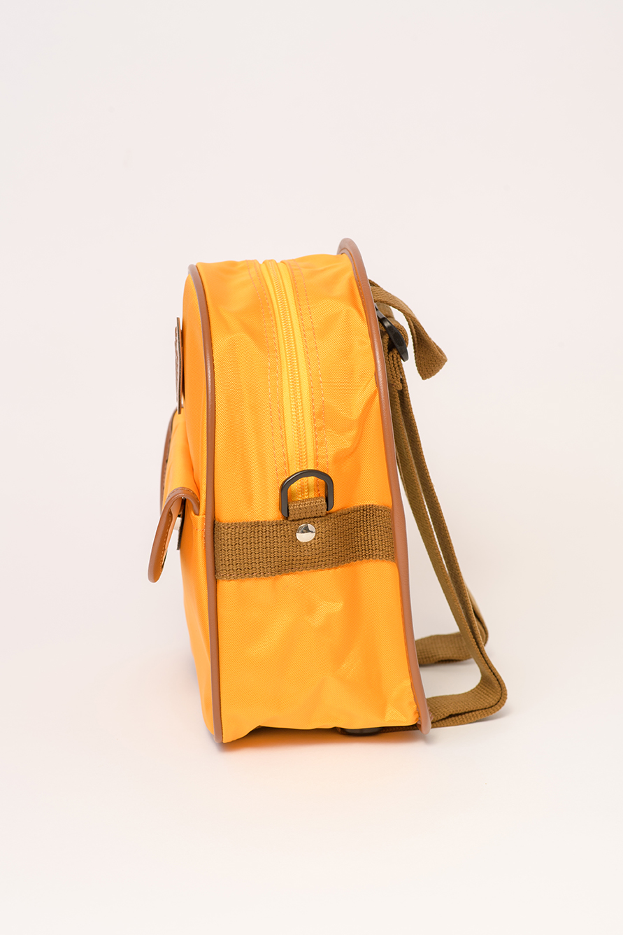 ナイロン素材の軽く背負いやすいリュックタイプの通園バック。オリジナルロゴをワッペン式でつけさせていただくことが可能です。