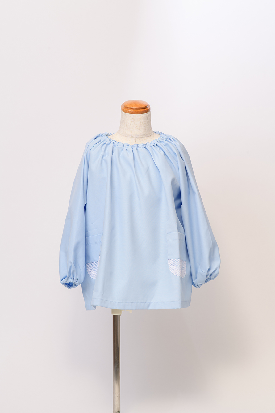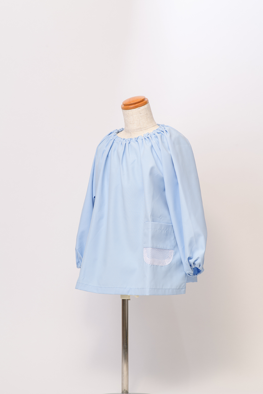 ポケットの下部がメッシュになっており、砂落ちする便利なスモッグです。汚れをはじき、洗濯時汚れが落ちやすい新防汚加工素材。繰り返し洗濯しても効果が持続する優れもの。外遊びや汚れやすい日々の園生活の必需品です。