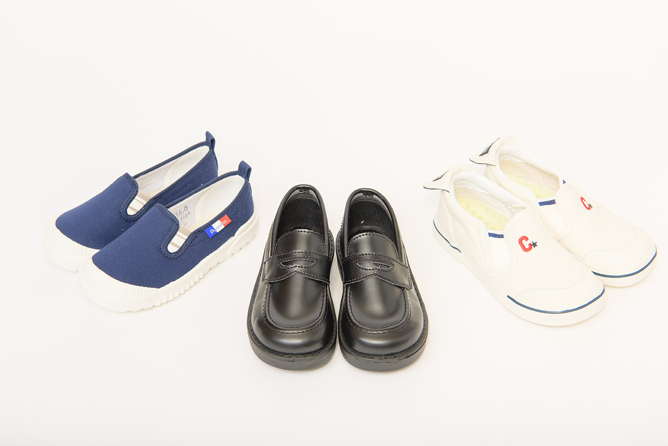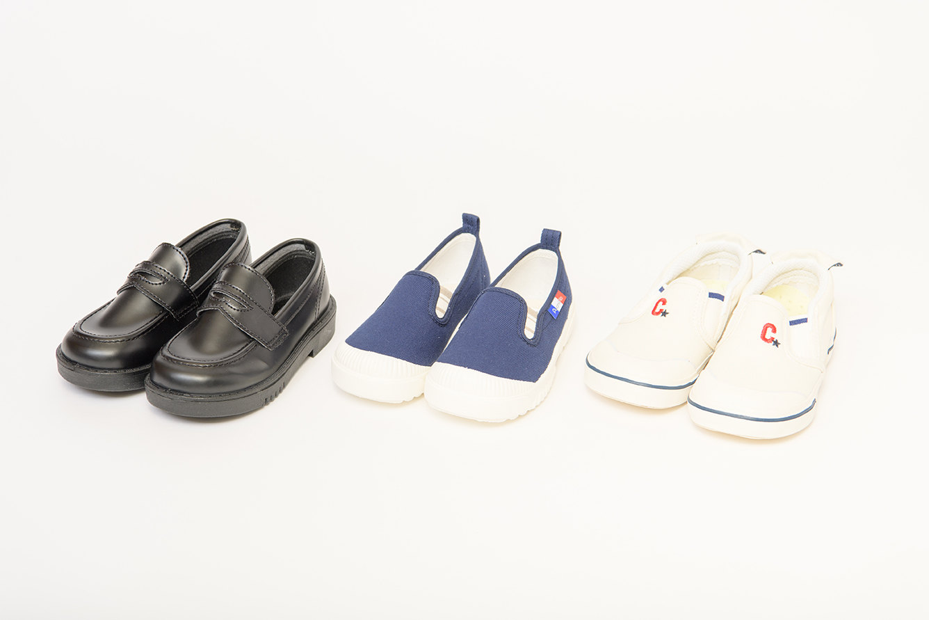 ローファー型の革靴、外履きなどの靴類は、制服や体操服に合わせて、さまざまな種類のものをご用意させていただいております。ぜひご希望をお聞かせください。